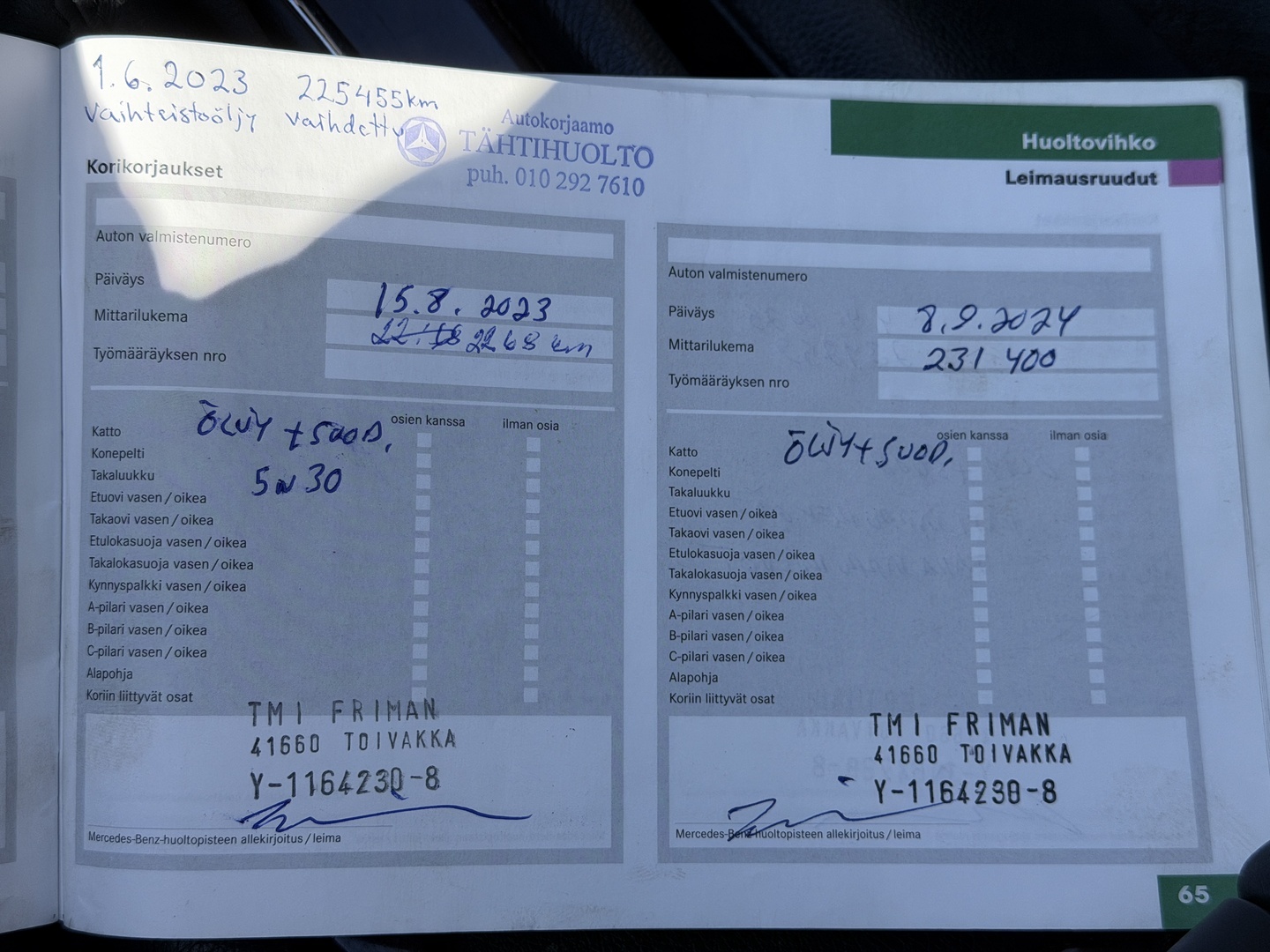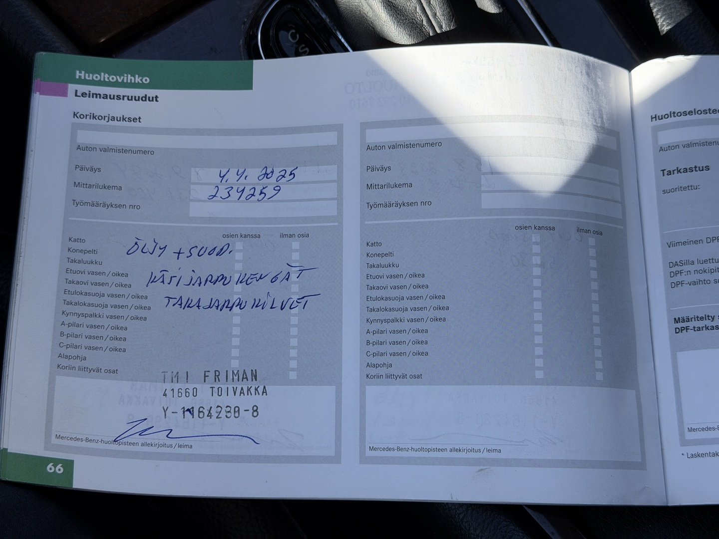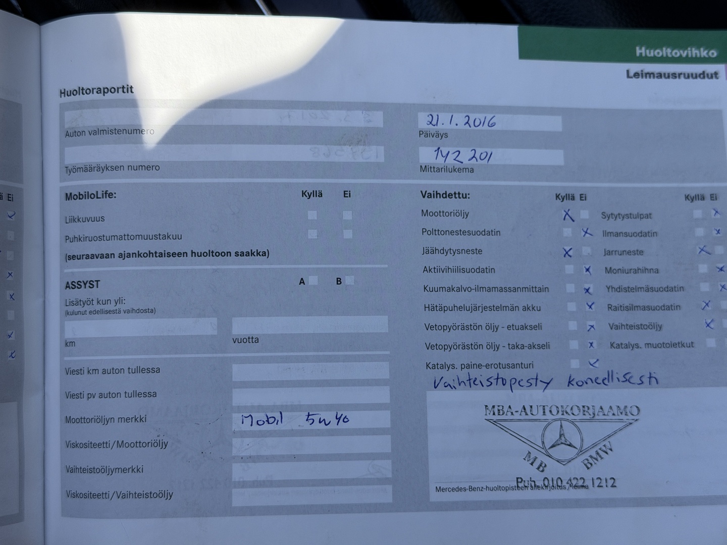 - Täydellinen huoltokirja
