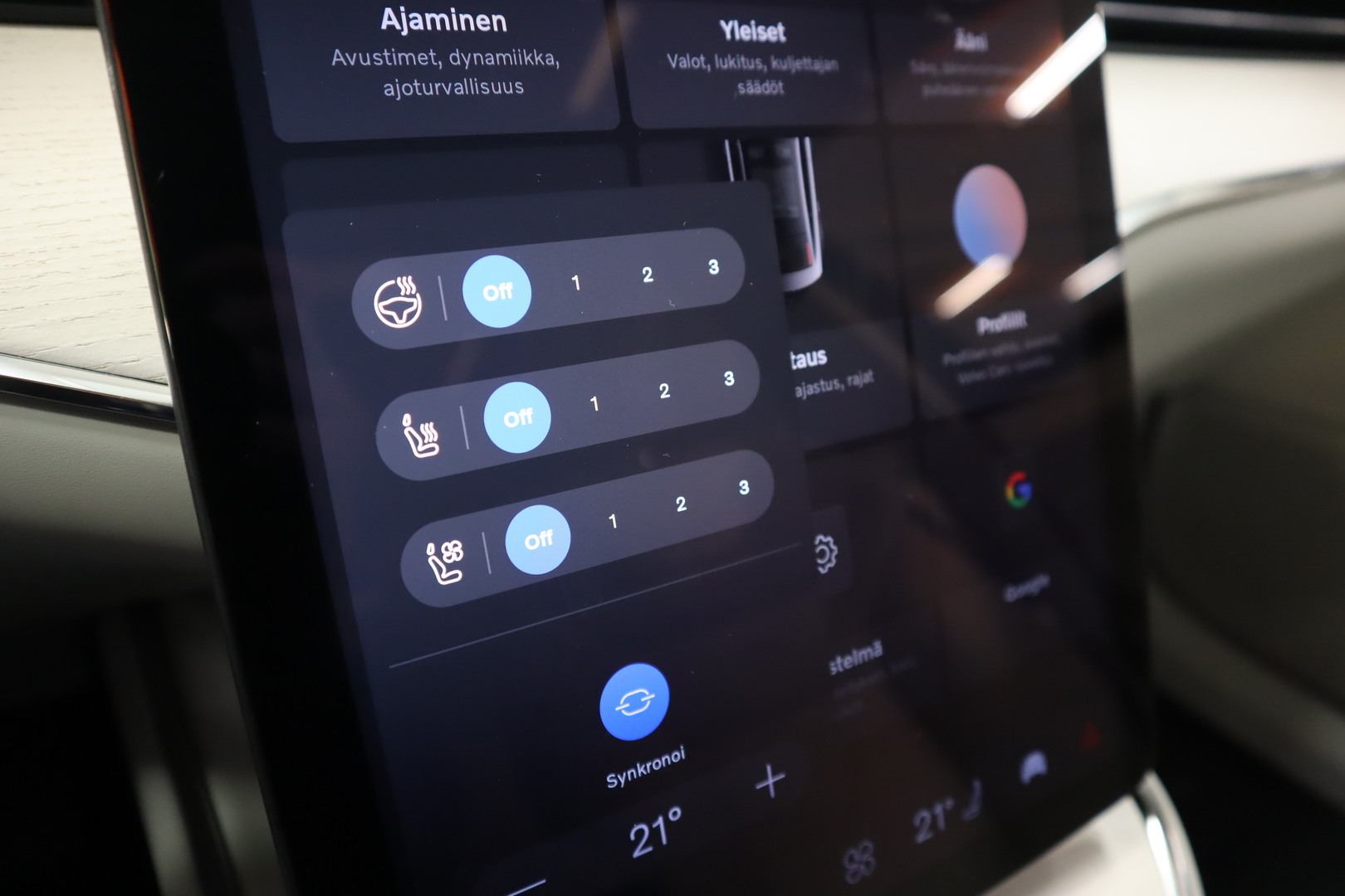 - Digitaaliset palvelut = Google A Services & Volvo Cars -app.