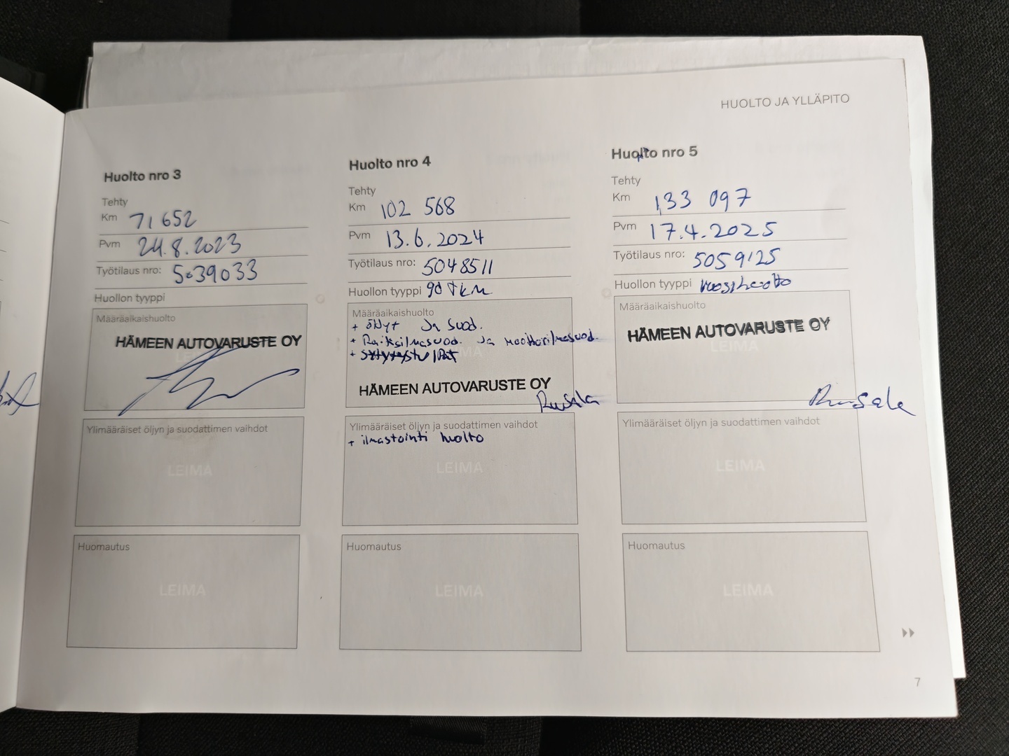 - Täydellinen merkkiliikkeen huoltokirja